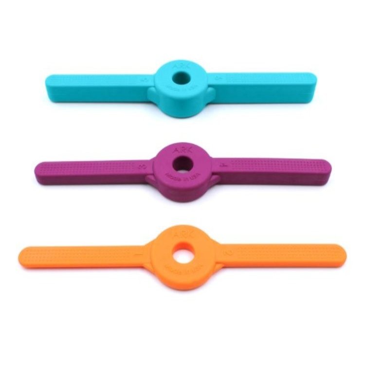 ARK’s Jaw Grading Bite Blocks are a great complement to any oral motor tool box.  Specially designed to work on jaw grading and stability, each arm has a different thickness to practice various jaw heights:
